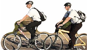 - ・二人組で短髪、白いワイシャツの恰好でマウンテンバイク(自転車)で活動。